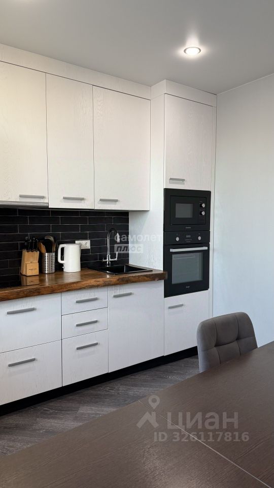Полноценно оборудованная кухня с гостинной зоной.