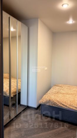 В спальне удобная кровать с ортопедическим матрасом и вместительным шкафом.