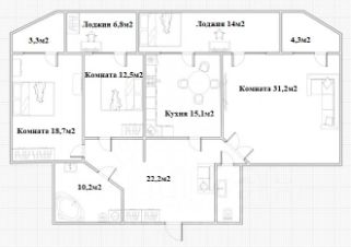 - 3 изолированные комнаты: большая гостиная - 31,2м2 и 2 спальни