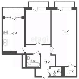 - Планировка удобная и легко адаптируется под формат "2+": две отдельные комнаты и кухня-гостиная. Такой вариант уже предусмотрен в дизайн-проекте.