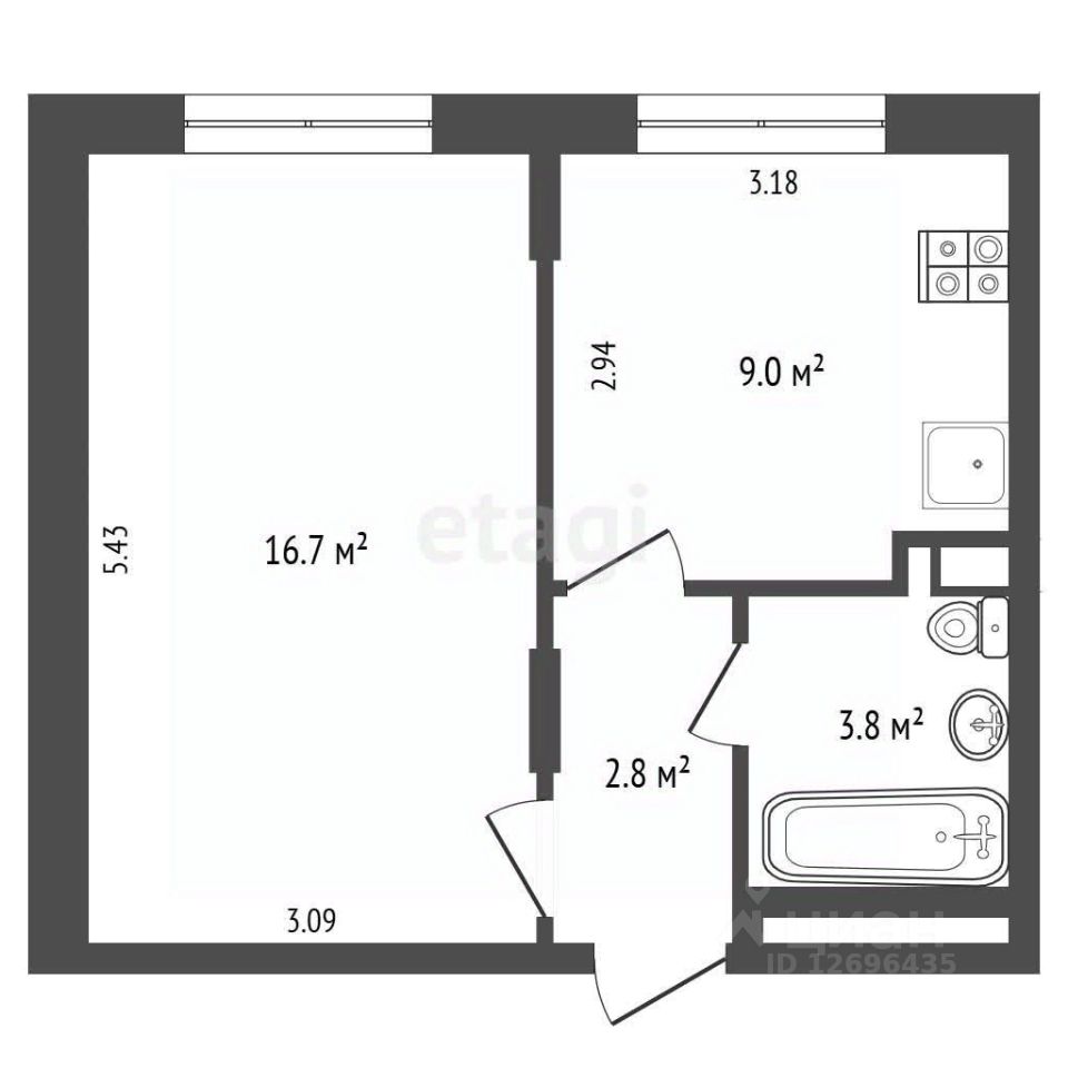 - Площадь квартиры по выписке из ЕГРН 32.3 м2;