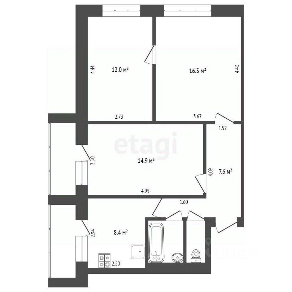 Предлагается просторная квартира общей площадью 66,9 м² в ухоженном доме с современной системой коммуникаций и новыми лифтами.