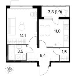 Продаётся 1-к квартира номер 910 общей площадью 38.3 кв.м. на 15-м этаже 25 этажного здания. Отделка Whitebox. Цена с учётом скидки.