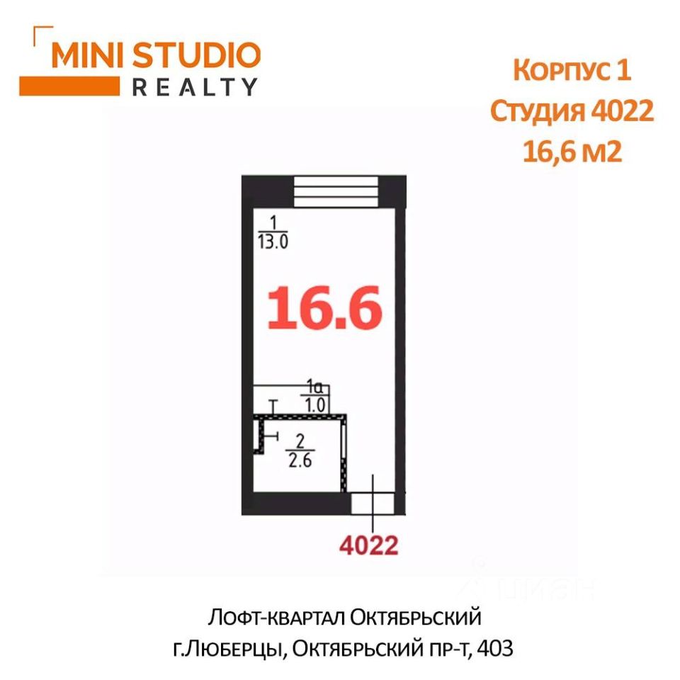 Продается студия без отделки 16,6 кв.м в подмосковном городе Люберцы.