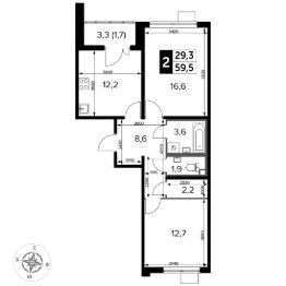 Продаётся 2-к квартира номер 526 общей площадью 59.5 кв.м. на 24-м этаже 24 этажного здания. Отделка Whitebox. Цена с учётом скидки.