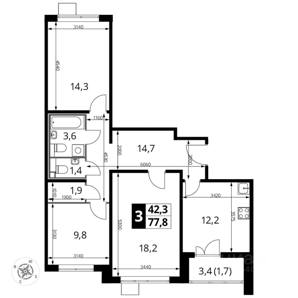 Продаётся 3-к квартира номер 153 общей площадью 77.8 кв.м. на 17-м этаже 24 этажного здания. Отделка Whitebox. Цена с учётом скидки.