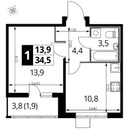 Продаётся 1-к квартира номер 688 общей площадью 34.3 кв.м. на 21-м этаже 25 этажного здания. Отделка Whitebox. Цена с учётом скидки.