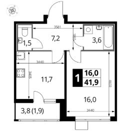 Продаётся 1-к квартира номер 889 общей площадью 41.9 кв.м. на 20-м этаже 25 этажного здания. Отделка Whitebox. Цена с учётом скидки.