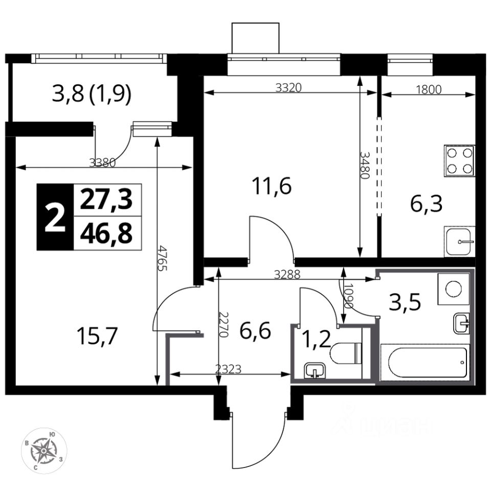 Продаётся 2-к квартира номер 188 общей площадью 46.9 кв.м. на 2-м этаже 24 этажного здания. Чистовая отделка. Цена с учётом скидки.