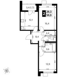 Продаётся 2-к квартира номер 744 общей площадью 59.1 кв.м. на 4-м этаже 24 этажного здания. Отделка Whitebox. Цена с учётом скидки.