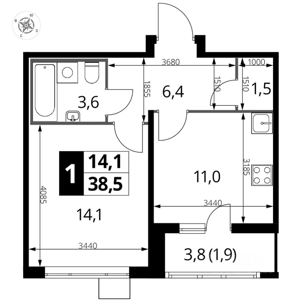 Продаётся 1-к квартира номер 814 общей площадью 38.2 кв.м. на 21-м этаже 24 этажного здания. Отделка Whitebox. Цена с учётом скидки.