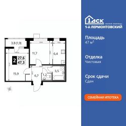 Продаётся 2-к квартира номер 233 общей площадью 47.4 кв.м. на 11-м этаже 24 этажного здания. Чистовая отделка. Цена с учётом скидки.