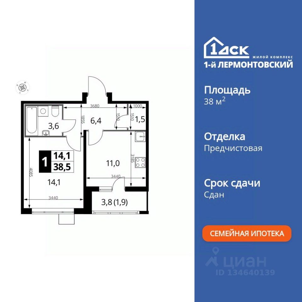 Продаётся 1-к квартира номер 814 общей площадью 38.2 кв.м. на 21-м этаже 24 этажного здания. Предчистовая отделка. Цена с учётом скидки.