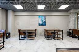 При входе резиденты и их гости попадают в стильное лобби с ресепшеном, а также лаундж-зону. Стильный интерьер в светлых тонах создает домашнюю уютную атмосферу и в то же время подчеркивает статус комплекса.