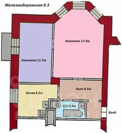 2 светлые комнаты: 17.6 кВ.м с высокими эркерными окнами и 11.7 кВ.м с выходом на балкон; уютная кухня, просторный холл, совмещенный с/у.