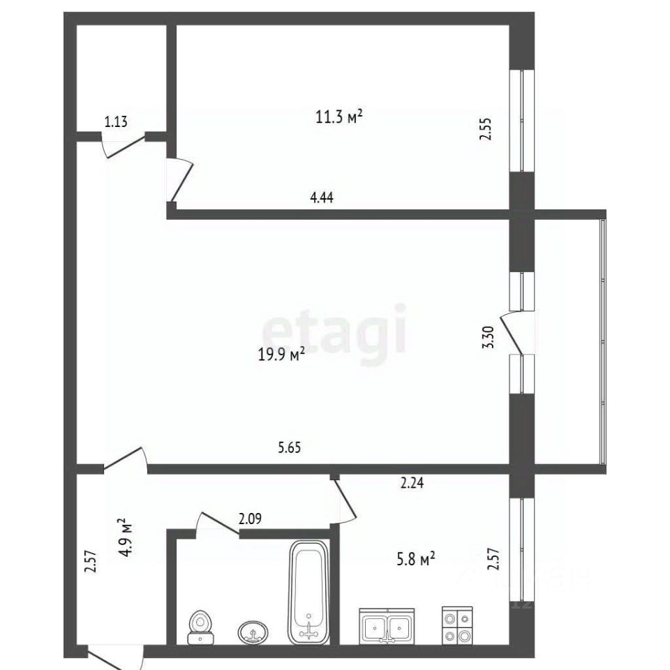 Двухкомнатная квартира на 3-м этаже с просторной планировкой: две изолированные комнаты, застекленный балкон, светлые помещения благодаря большим окнам, выходящим на тихую зеленую сторону двора.