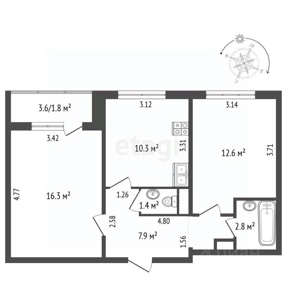 Фото кухни, комнат и коридора визуализация возможного ремонта. Продается с отделкой White Box: выполнены все черновые работы, включая выравнивание стен и стяжку пола, установлены радиаторы, смонтирована электрика с щитком, а также полностью готова отделка санузлов с установленной сантехникой и плиткой. Для заселения остаются только финишные работы — укладка напольного покрытия, поклейка обоев и монтаж потолков, что позволяет создать интерьер под собственный вкус без затрат на капитальный ремонт.