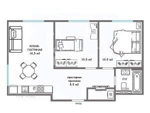 Идеальная 2-комнатная квартира (апартаменты) в ЖК "Самолёт " , позиционируется как евро трешка.
