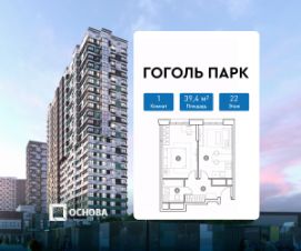 Продается 1-к квартира площадью 39.4 кв.м. на 22-м этаже 22 этажного дома в ЖК "Гоголь парк" от ГК ОСНОВА.