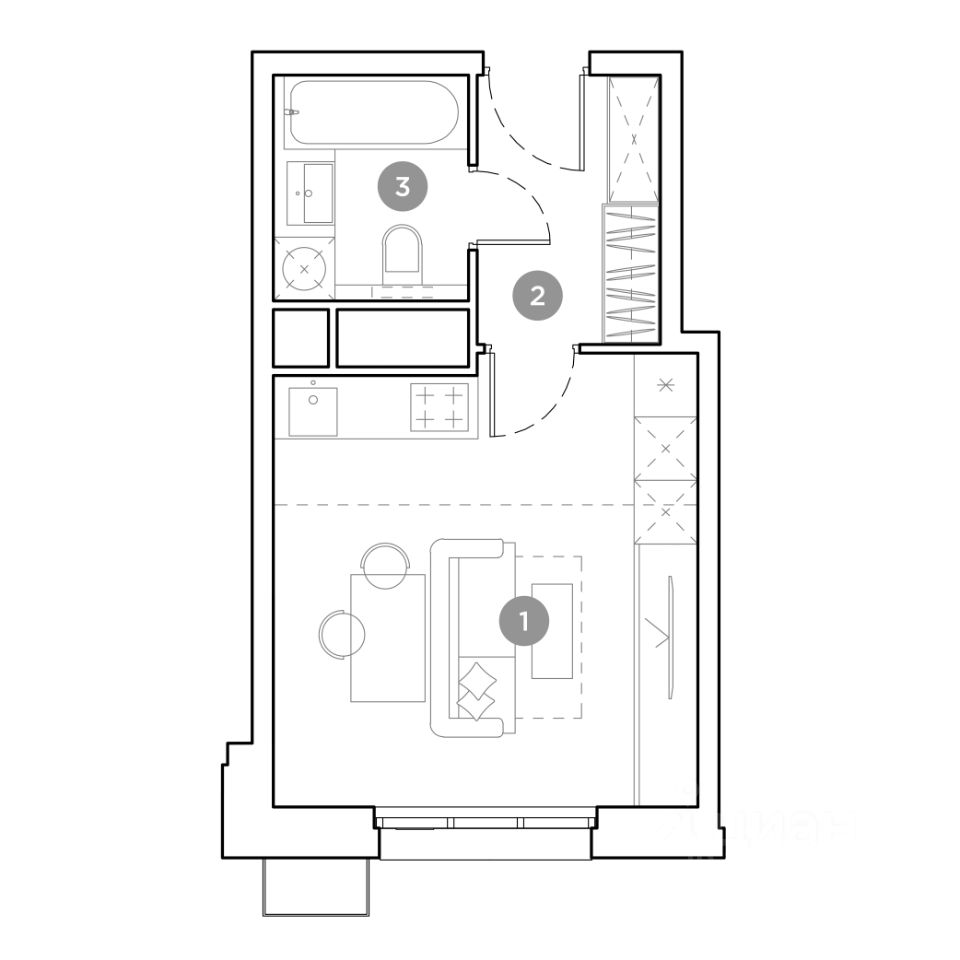 Продается студия площадью 24.9 кв.м. на 22-м этаже 22 этажного дома в ЖК "Гоголь парк" от ГК ОСНОВА.