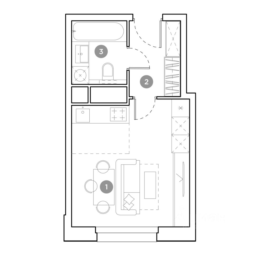 Продается студия площадью 24.7 кв.м. на 20-м этаже 25 этажного дома в ЖК "Гоголь парк" от ГК ОСНОВА.