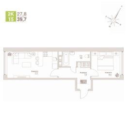 Продается просторный 2-комнатный апартамент на две стороны (распашонка), с прекрасным видом, общей площадью 39,7 м² на 10-м этаже 12-ти этажного строящегося дома АПАРТ-комплекса "ВЛЮБЕРЦЫ".