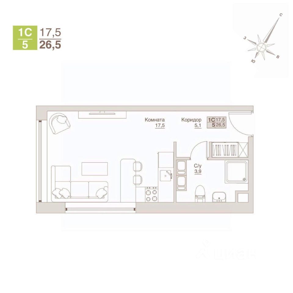 Продается уютный апартамент-студия с двумя широкими окнами и потрясающим видом, общей площадью 26,5 м² на 11-м этаже 12-ти этажного строящегося дома АПАРТ-комплекса "ВЛЮБЕРЦЫ".