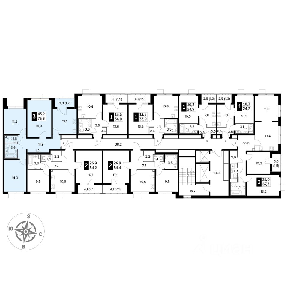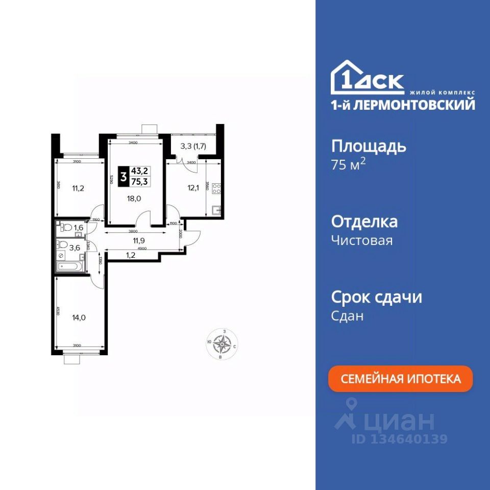 Продаётся 3-к квартира номер 204 общей площадью 75.3 кв.м. на 7-м этаже 24 этажного здания. Чистовая отделка. Цена с учётом скидки.