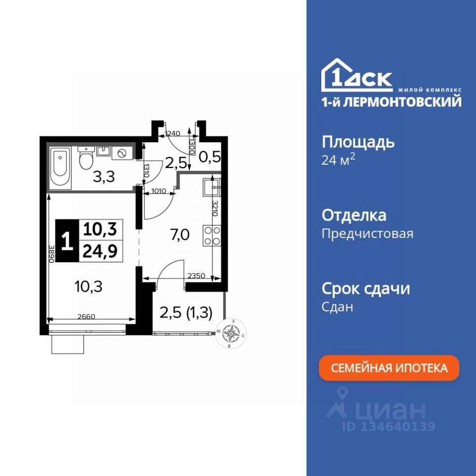 Продаётся квартира-студия номер 696 общей площадью 24.8 кв.м. на 11-м этаже 25 этажного здания. Предчистовая отделка. Цена с учётом скидки.
