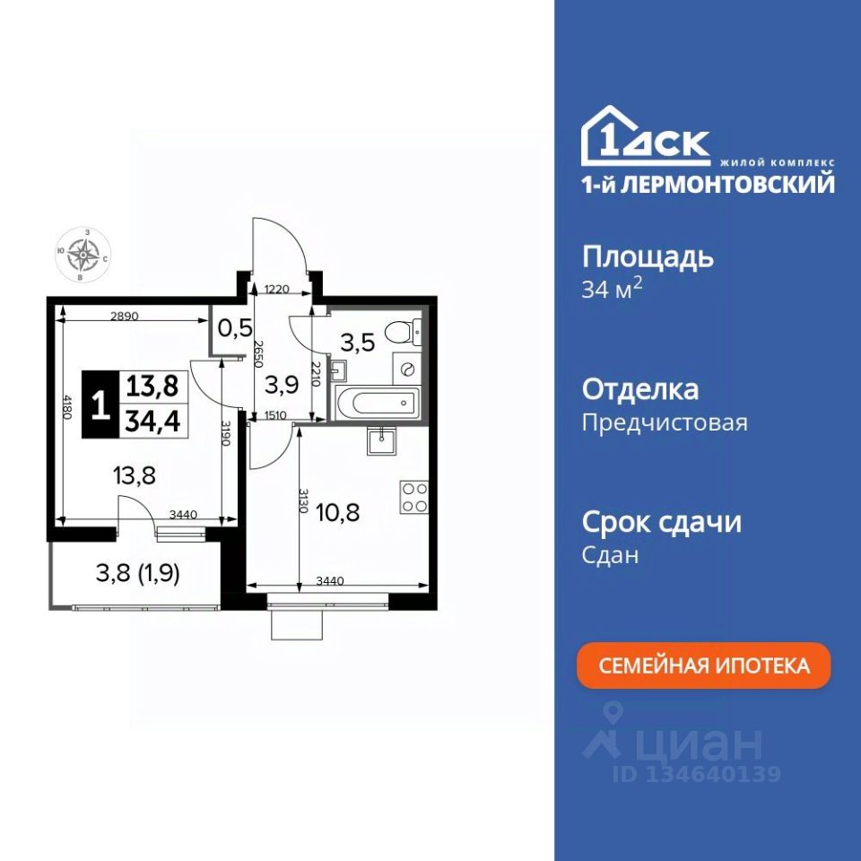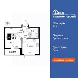 Продаётся 1-к квартира номер 705 общей площадью 34.3 кв.м. на 12-м этаже 25 этажного здания. Предчистовая отделка. Цена с учётом скидки.