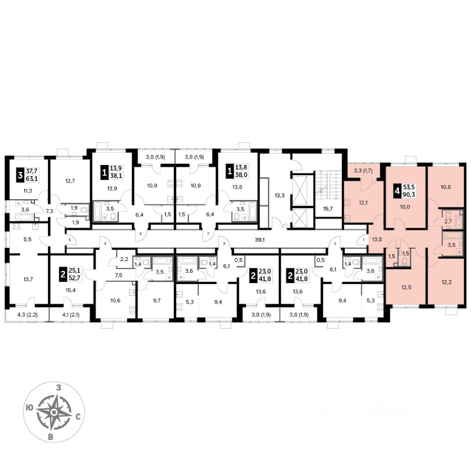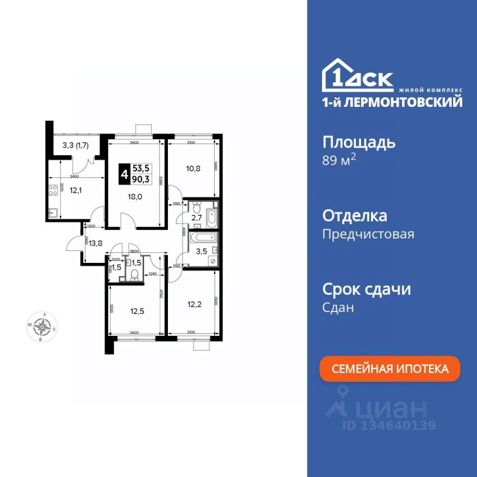 Продаётся 4-к квартира номер 842 общей площадью 89.8 кв.м. на 6-м этаже 25 этажного здания. Предчистовая отделка. Цена с учётом скидки.