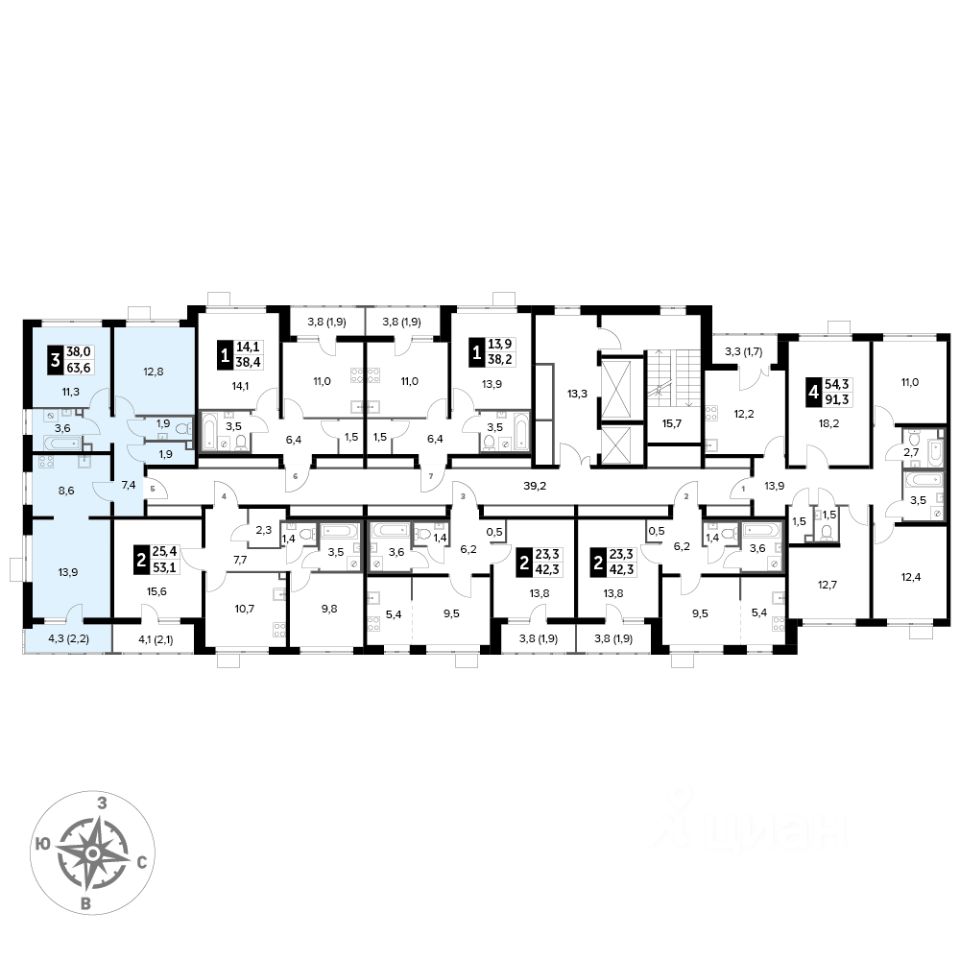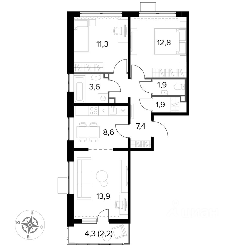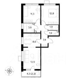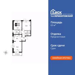 Продаётся 3-к квартира номер 902 общей площадью 63.7 кв.м. на 14-м этаже 25 этажного здания. Предчистовая отделка. Цена с учётом скидки.