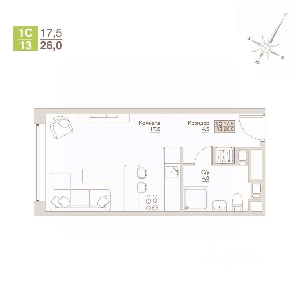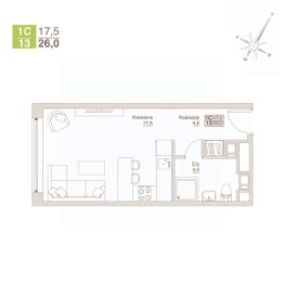 Продается уютный апартамент-студия с великолепным видом общей площадью 26 м² на 11-м этаже 12-ти этажного строящегося дома АПАРТ-комплекса "ВЛЮБЕРЦЫ".