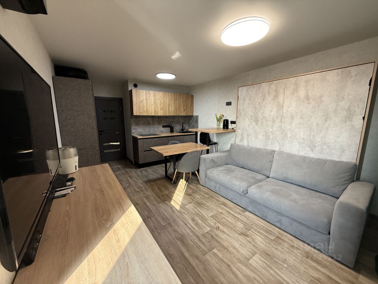 Огромная кухня-гостиная 22,6 кв. м — идеальное место для семейных вечеров и встреч с друзьями.