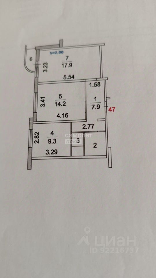 • Идеальная планировка: две изолированные комнаты правильной формы (17,9 м² и 14,2 м²), просторный коридор (7,9 м²), раздельный санузел и застекленная лоджия (2,86 м²).