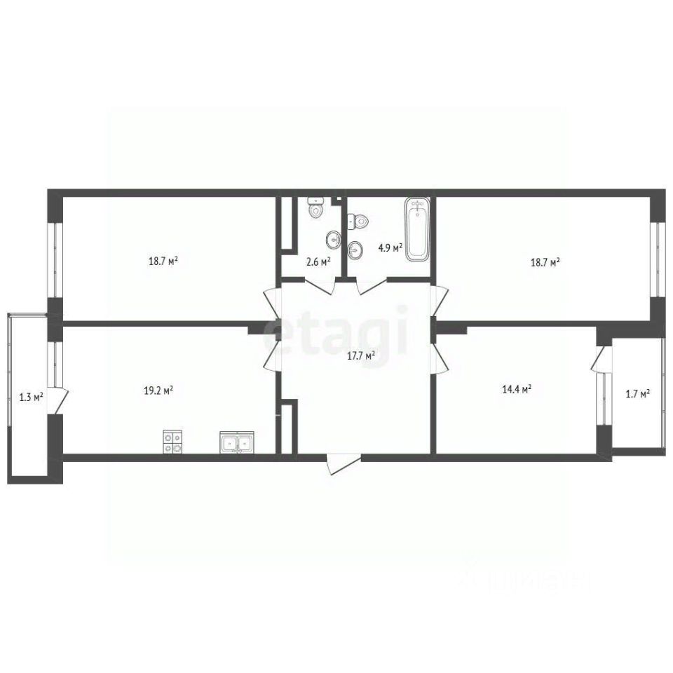 • Площадь: 100 м², просторная "распашонка" — комнаты изолированы, максимальный комфорт для семьи, по документам первый этаж, но по факту второй, так на первом этаже входная группа.