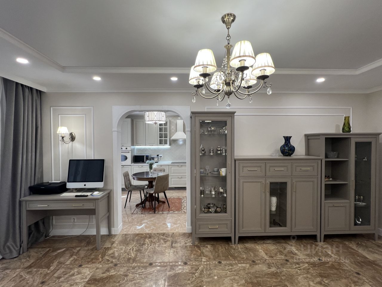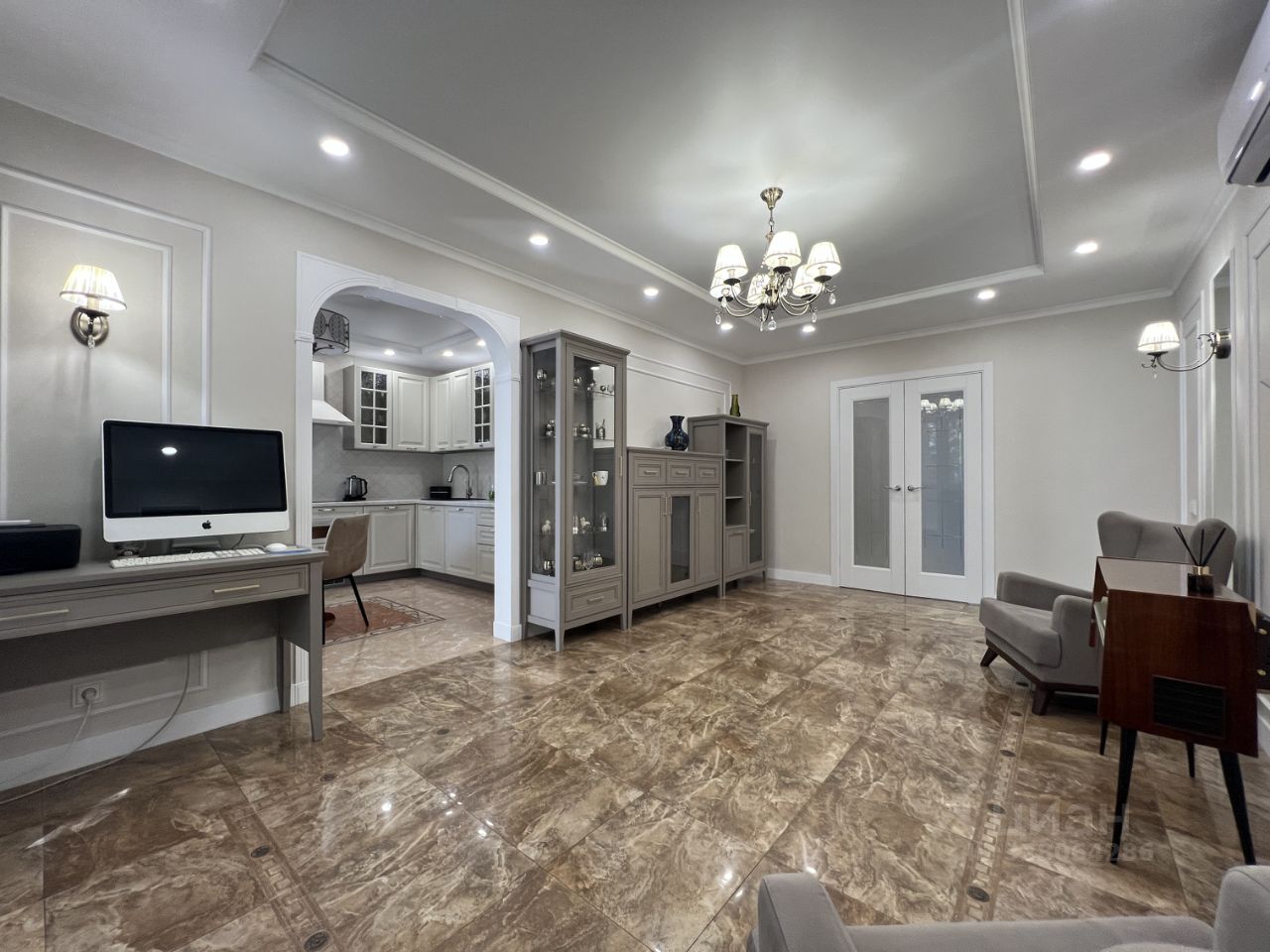 Отделке 1 год, делали для себя, дорого, идеальное состояние - заезжай и живи. Двери обливные, свет везде реверсный - коллекция MAYTONI, везде теплые полы. В трех помещениях лежит мрамор, в гостиной коллекция Версаче.