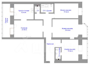 Кухня, гостиная, 3 спальни, 3 с/у
