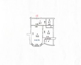 Общая площадь квартиры составляет 41,9 кв. м, из которых 19,3 кв. м — жилая площадь, 9,8 кв. м — кухня. Высота потолков — 2,79 м, что создаёт ощущение простора и свободы.