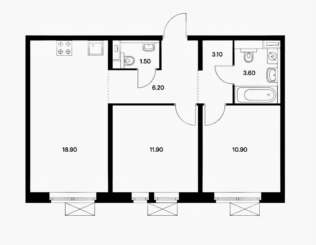 Изолированные комнаты площадью 12 и 11 кв. м позволят вам организовать комфортное пространство как для жизни, так и для работы. Высота потолков в 2,64 метра.