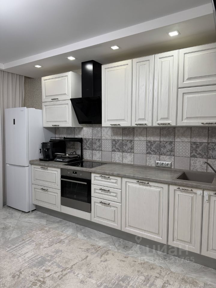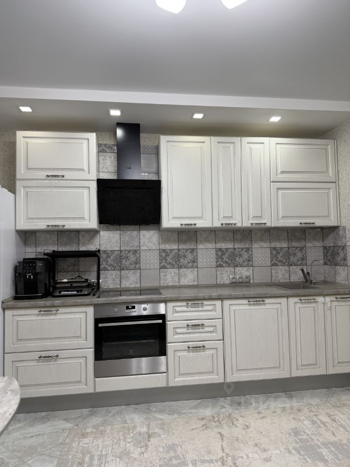 Просторная кухня оснащена встроенной кухонной мебелью Кухонный двор и техникой: холодильником, варочной панелью, духовым шкафом, вытяжкой, посудомоечной машиной. Также остаётся стол, стулья и удобный диван. Установлен тёплый пол для дополнительного комфорта.