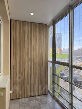Лоджия застеклена и обустроена: здесь встроен вместительный шкаф и подключено освещение. Это позволяет использовать её как дополнительное пространство.