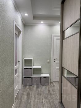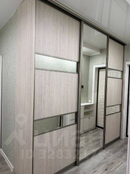 В прихожей — трёхметровый очень вместительный встроенный шкафкупе с двумя штангами, множеством полок и ящиков.