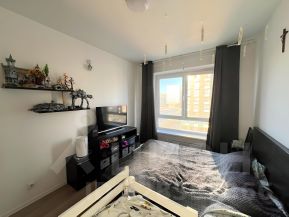Продается уютная однокомнатная квартира в современном жилом комплексе в Люберцах на улице Лётчика Ларюшина, дом 20. Квартира расположена на 10 этаже 26-этажного монолитного дома 2020 года постройки. Общая площадь квартиры составляет 33.5 кв. м, из которых 14.5 кв. м отведено под жилую зону, а кухня занимает 13.5 кв. м. Высота потолков — 2.65 метра, окна выходят во двор.