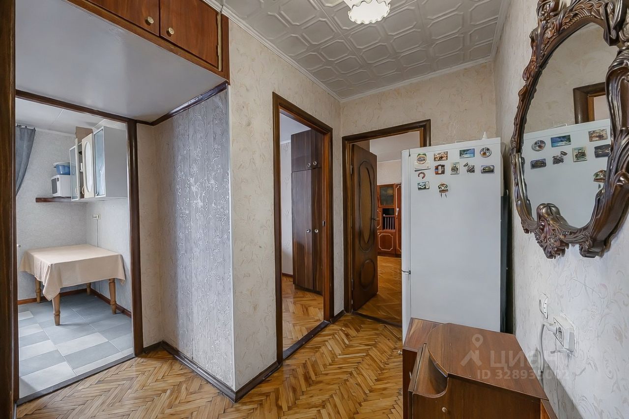 Общая площадь квартиры составляет 45,1 кв. м и расположена она на 7-м этаже 9-этажного кирпичного дома 1975 г.п. 2 изолированные комнаты, застеклённый балкон, пол- паркет, санузел раздельный, потолки- 2,55 м.
