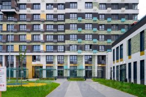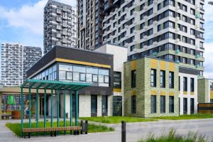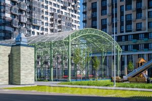 Первые этажи дома отданы под стрит-ритейл и другую коммерческую инфраструктуру. Особое внимание уделено благоустройству двора: озеленение, игровые площадки для детей разных возрастов, уютные ротонды для взрослых, теневые навесы.