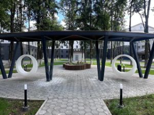 - На огороженной безопасной зеленой территории расположены спортивная площадка и места отдыха, оборудован паркинг