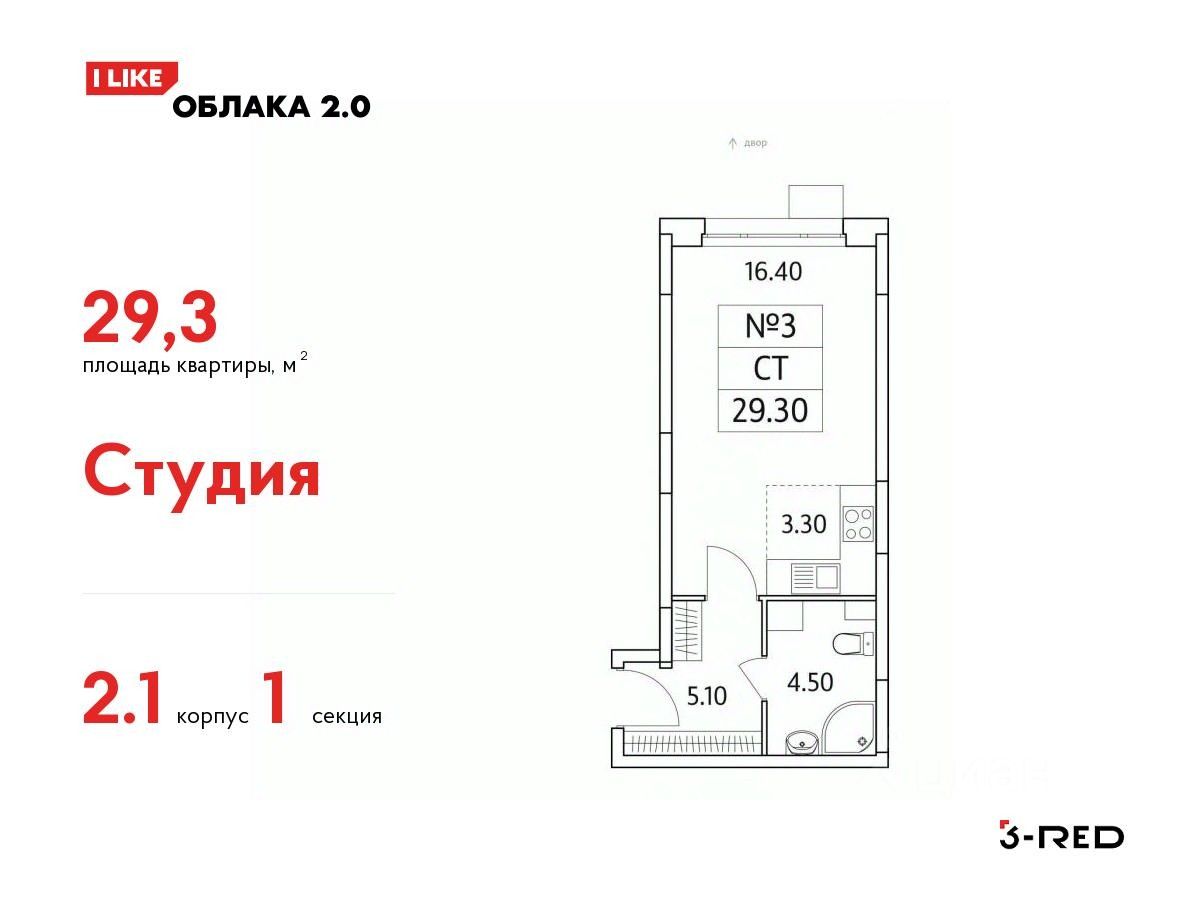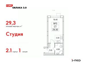 Продается студия(Корпус 2.1) общей площадью 29,3 кв.м на 2 этаже.