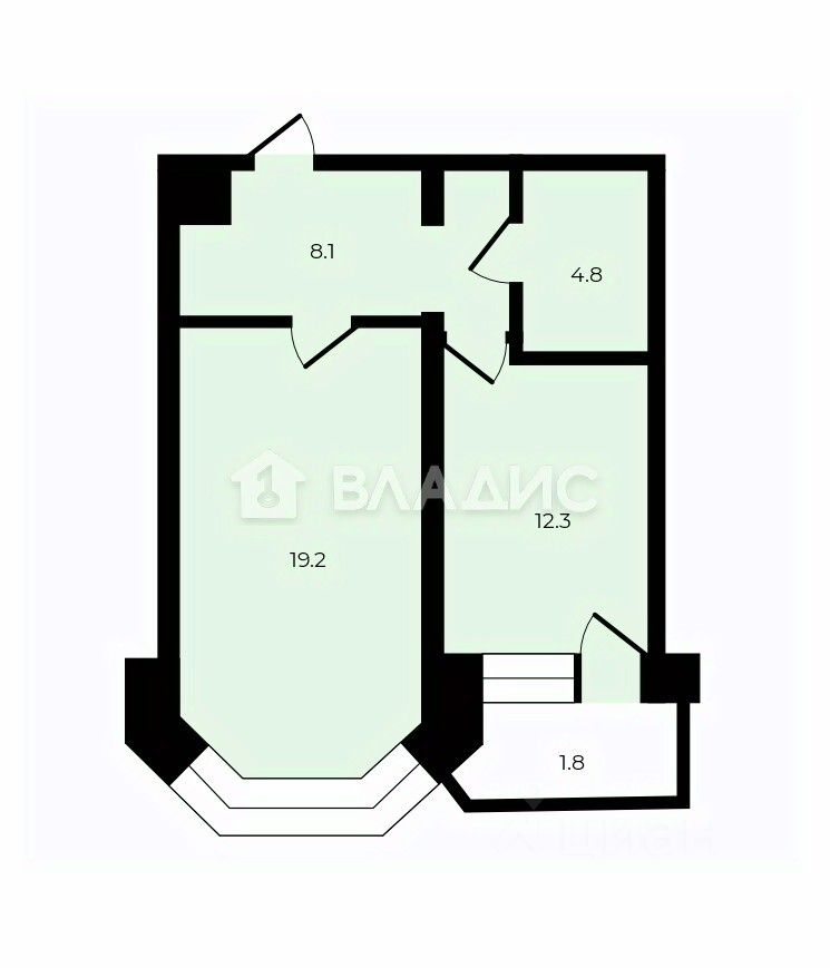 Однокомнатная квартира площадью 43,6 кв. м с изолированными комнатами, жилой площадью 19,2 кв. м и кухней 12,3 кв. м. Высота потолков — 2,7 м. Есть лоджия — отличное место для отдыха.