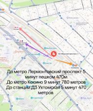 - До метро Лермонтовский проспект 5 минут пешком 470м